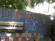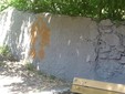 Erba alta, murales, lucchetto della porta divelto, cocci di vetro nel terreno e pezzi di staccionata divelti con chiodi sporgenti