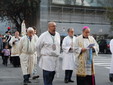 La statua della Madonna di Fatima è atterrata con elicottero della guardia di Finanza, di seguito è stata avviata la processione verso il Duomo guidata dal vescovo Lupi per la celebrazione della messa prevista alle 18.