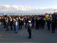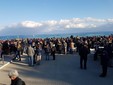 Trepidazione per l'arrivo dell'aereo con a bordo i 4 paracadutisti (Fabio Cini, Gianmario Gelati, Agostino Guerrieri e Alessandro Pomponi) che si sono lanciati nei pressi del Molo Capo Lena portando con se il Tricolore e il vessillo della Città di Albenga.