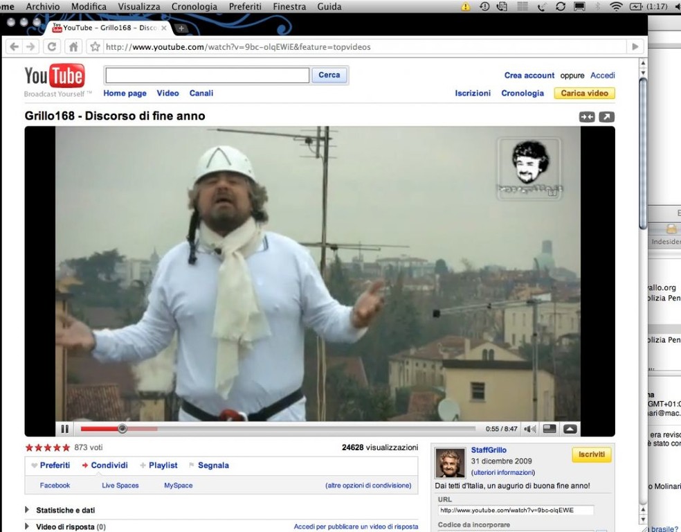 Discorso di fine anno in rete: su Youtube Grillo batte Napolitano 26517 a 855. Il dato è sconcertante, e non è uno scherzo. Alle ore 20:30 del 1 gennaio 2010 - su Youtube - il discorso alla nazione di Beppe Grillo è stato visualizzato da 26517 persone, quello del presidente della repubblica Giorgio Napolitano da 855. Letto bene. Non mancano cifre: ottocentocinquantacinque visualizzazioni.