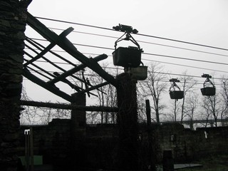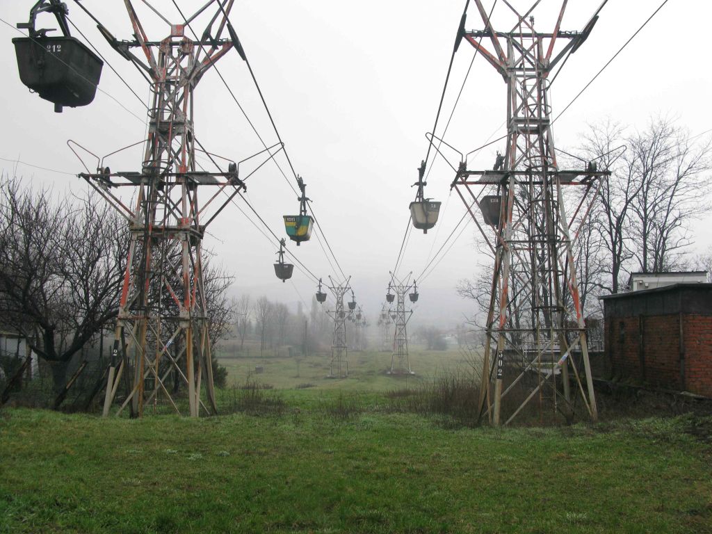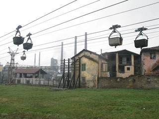 Ovunque, li attorno, la "terra" è intrisa di fango scuro, quando piove. L'ultimo tratto delle Funivie, ora ferme, scorre in pianura e si perde in una foschia maleofodante sfiorando quello che un tempo fu un centro abitato. Oggi sembra un paesaggio da day after, Carbone in ogni dove; due gatti, inspiegabilmente bianchi, a presidio. Deserto (quando si dice lo sviluppo)