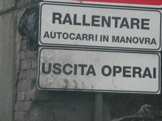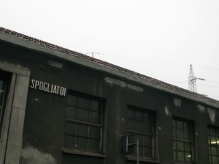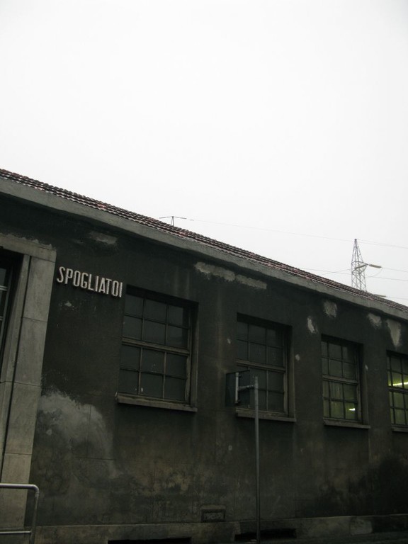 Poco più avanti, la scritta "Refettorio"sembra uscita da un'icona mussoliniana , ma anche quella scritta "Spogliatoi", ripulite alla meglio dal nero perenne e incrostato non solo nelle pareti circostanti ma in ogni recondita cellula di chi vive e lavora lì.