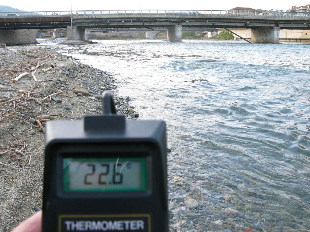 PS: già che c'eravamo abbiamo misurato senza pretesa scientifica la temperatura delle acque di scarico alla foce: 22,5 C°. Non è che sia questo il vero problema...?