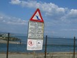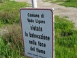 La foce del torrido Quiliano è tempestata di cartelli che in ogni modo e foggia indicano il divieto di balneazione, espresso dalla Capitaneria di Porto con l'Ordinanza 45/2003 (come riportato).