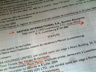 Curioso che, cercando sulla guida telefonica e sulle pagine gialle delle Isole Vergini Britanniche, non risulti nessuna società denominata GEOTEA o GEO, fatto salva un'azienda di import export la cui sede caraibica coincide: GEO IND. CO. Ltd., Akara Building 24 DE