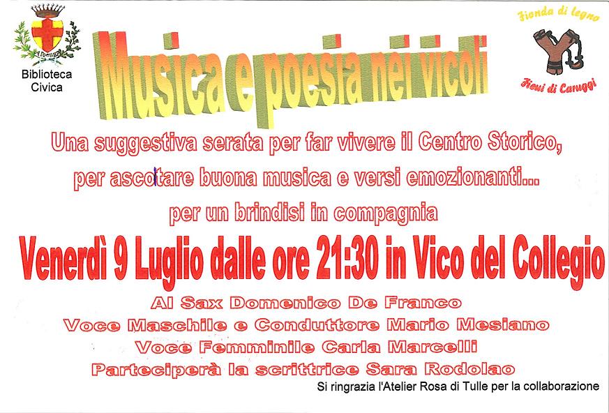 Venerdi 9 luglio, alle 21,30, ad Albenga, in Vico Del Collegio, organizzata dai Fieui di Caruggi e col patrocinio del Comune di Albenga, si terrà una suggestiva serata per far rivivere il centro storico, per ascoltare buona musica e versi emozionanti e per un brindisi in compagnia.