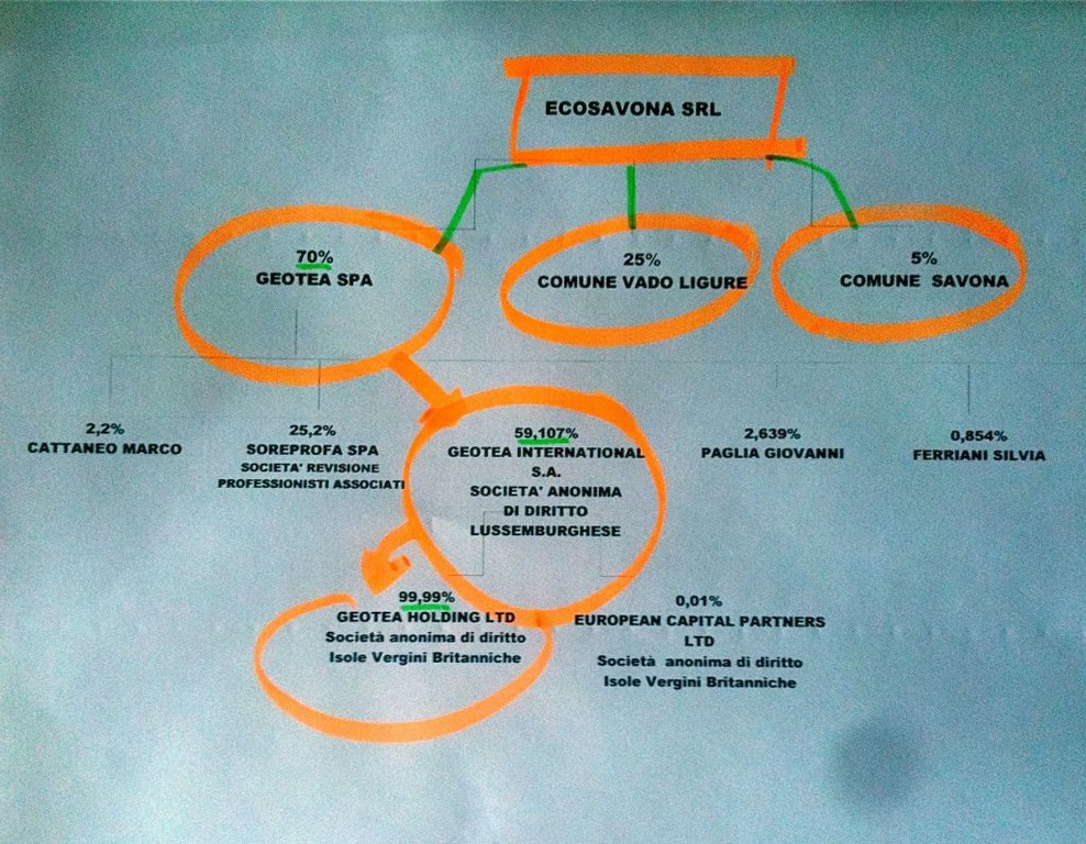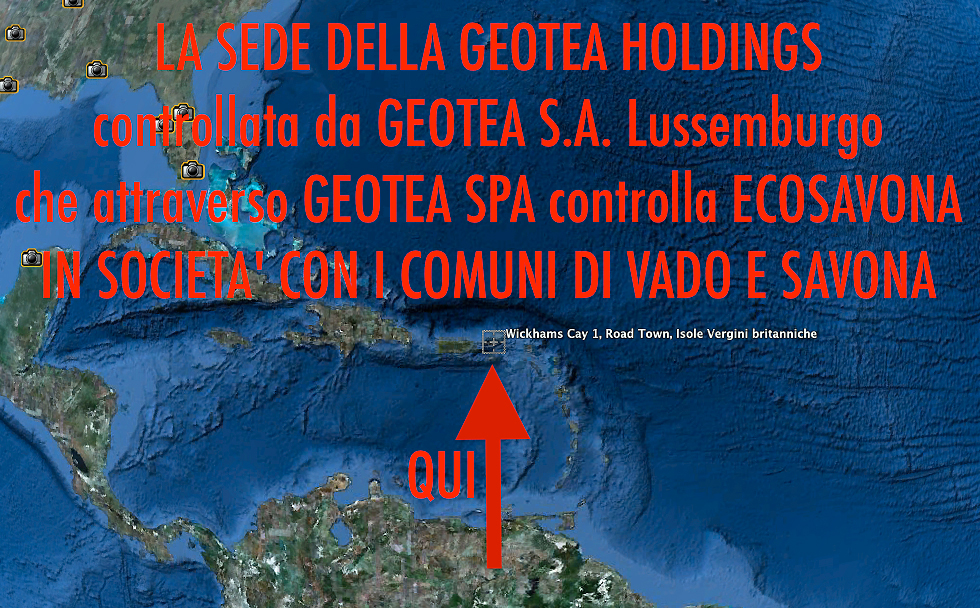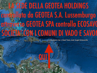Per accorgersi di certe particolarità societarie della GEOTEA, che passando dal Lussemburgo (curiosa abitudine savonese) approda al paradiso delle ISOLE VERGINI BRITANNICHE non occorreva e non occorre la Spectre. Visto però che non pare facciano a botte o che ci sia la coda per cercare di vederci chiaro, ci sembra opportuno offrire ai silenti un piccolissimo, ulteriore pubblico contributo, a che non si possa dire: "non sapevo".