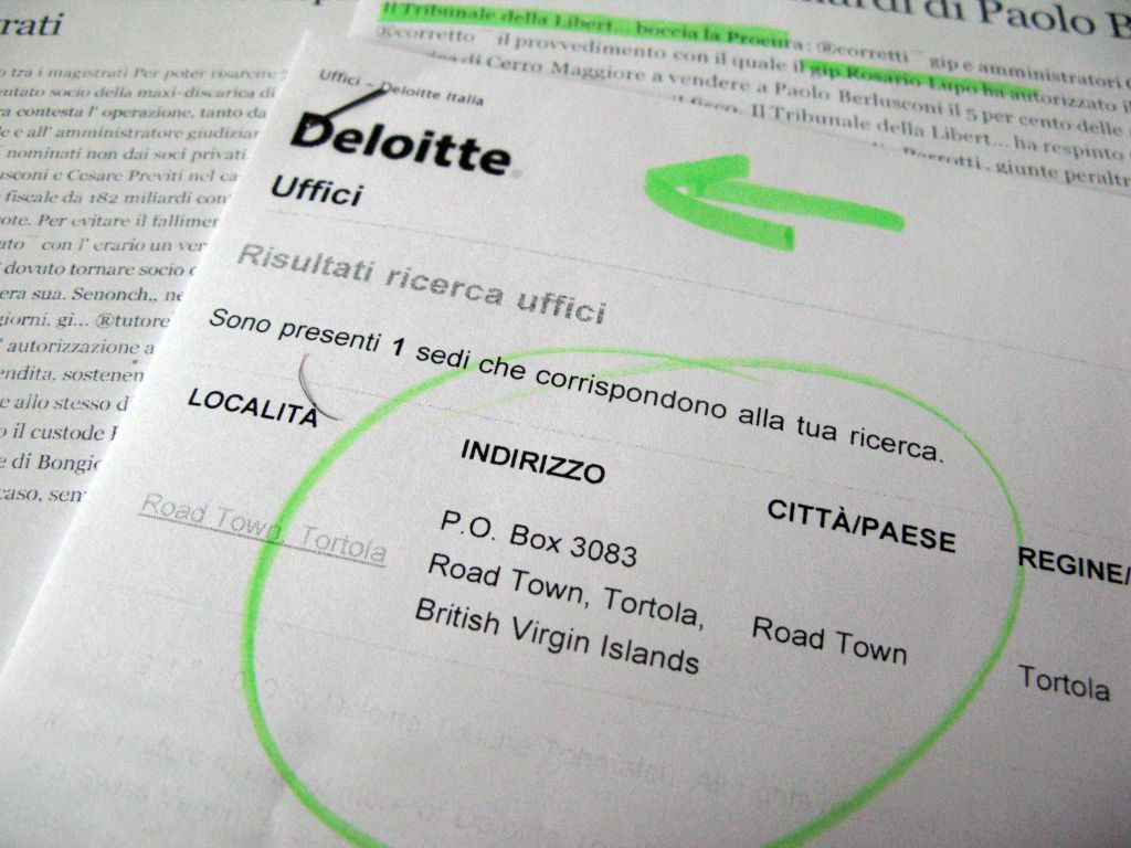 PS: Casualmente le maggiori società internazionali di revisione contabile PriceWaterhouseCoopers, Deloitte e KPMG hanno la loro filiale nelle Isole Vergini, proprio a Tortola.Anche Reconta Ernst & Young, la società di revisione contabile utilizzata da Geotea Spa
