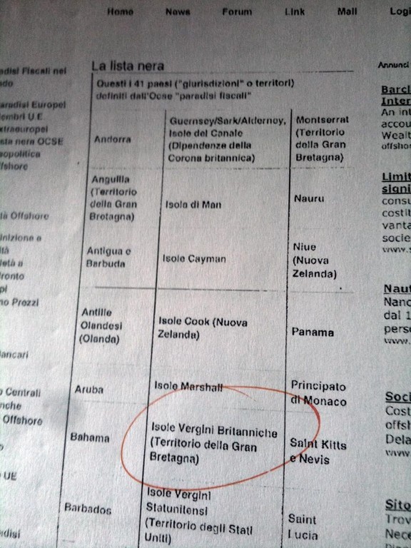 PPS: Per completezza riportiamo alcune notizie che hanno visto coinvolte società con sedi alle Isole Vergini:
