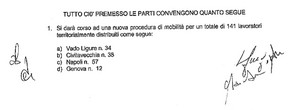 Azienda e sindacati "CONVENGONO" quindi che "si darà corso ad una nuova procedura di mobilità per un totale di 141 lavoratori".