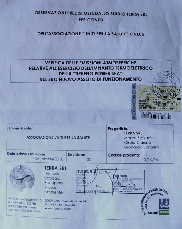 La scorsa settimana abbiamo pubblicato documenti che provano la sottoscrizione di precisi accordi di incentivi all'esodo tra la Triplice e Tirreno Power. Oggi pubblichiamo le conclusioni della perizia giurata commissionata da Uniti per la Salute.