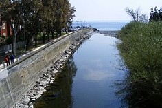 Possiamo ammirare le inappuntabili opere della foce del torrente Arrestra prima e dopo l'alluvione, nelle due foto seguenti.