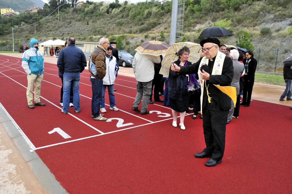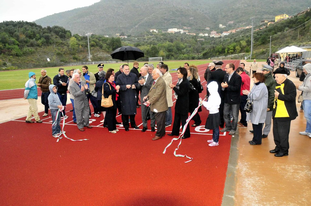 Inaugurata stamane la pista di atletica di località Marici a Boissano. La struttura è costituita da fabbricati ed aree di proprietà comunale, concessi alla Comunità Montana Ponente Savonese in comodato d’uso, e comprende una pista di atletica a sei corsie, contornata da un terreno di gioco in erba naturale, pedane per il salto in lungo, il salto triplo e il salto con l’asta, una scala per i giudici-cronometristi a sei posti ed un edificio all’interno del quale sono stati collocati gli spogliatoi, la sala medica e i locali di servizio.