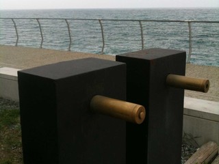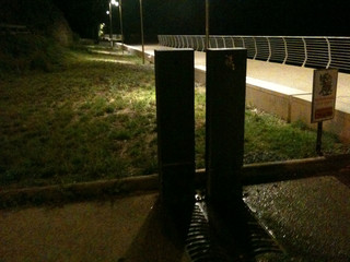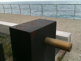 I lampioni collocati sulla piazzetta inutile di cui sopra, vengono accesi solo ogni tanto, e la ruggine ne sta facendo facile scempio. Circostanza assolutamente imprevedibile, se si colloca un oggetto metallico in riva al mare. Anche per gli stessi designers, evidentemente