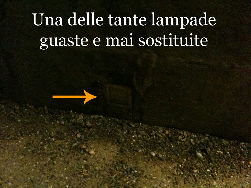 4) Risparmio energetico. Dunque perché si lascia acceso tutto il resto della passeggiata, salvo le numerose lampade nel frattempo saltate e non sostituite?