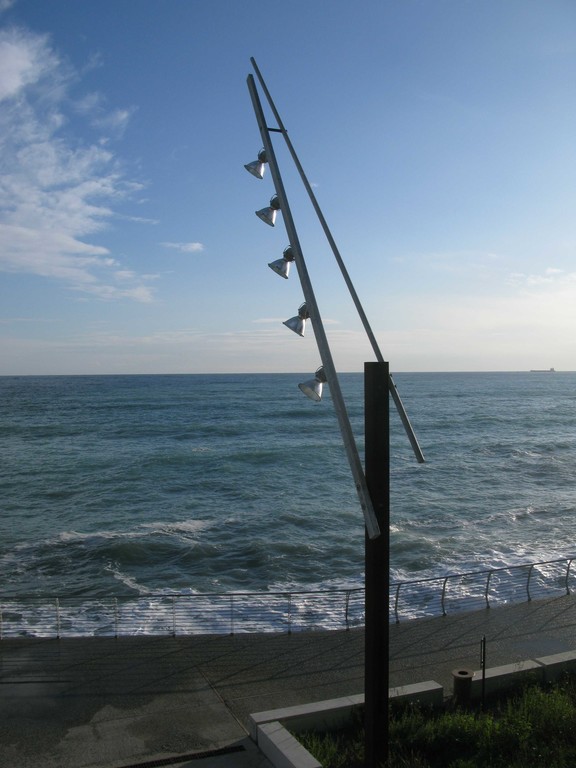 - Le torri faro installate sulla passeggiata di levante rivestono particolare pregio artistico e architettonico (1). Sono frutto di studiate scelte architettoniche del progettista Arch. Marco Ciarlo in modo da esaltare lo spazio destinata a attività di intrattenimento dell’area sottostante. Sono state condivise dall’Amministrazione Comunale oltre che per l’elevato pregio architettonico, proprio per la loro economicità e durabilità.