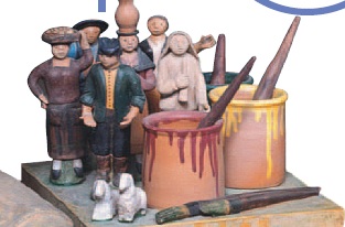 Umberto Piombino (Genova 1920-1995) iniziò ad occuparsi di ceramica agli inizi degli anni ‘70 proprio presso i laboratori di "Pozzo Garitta" di Bartolomeo Tortarolo (detto appunto “Bianco d'Albisola”) spronato dall'amico Emanuele Luzzati. La sua produzione di “figulinaio” fu principalmente incentrata sulla realizzazione di piccole sculture sacre ispirate allo stile appreso, sempre nella fornace di Tortarolo, da Beatrice Schiappapietra, “figulinaia” considerata dallo stesso Piombino “maestra” nell’arte delle statuine presepiali. Sempre negli anni ’70, Piombino operò come indipendente nello studio di Lino Grosso (1915-1995), discendente di una famiglia di noti vasai albisolesi.