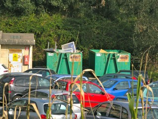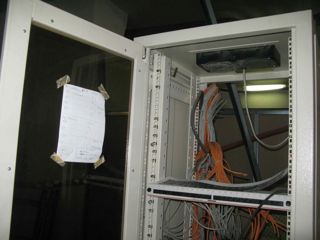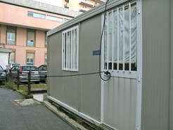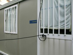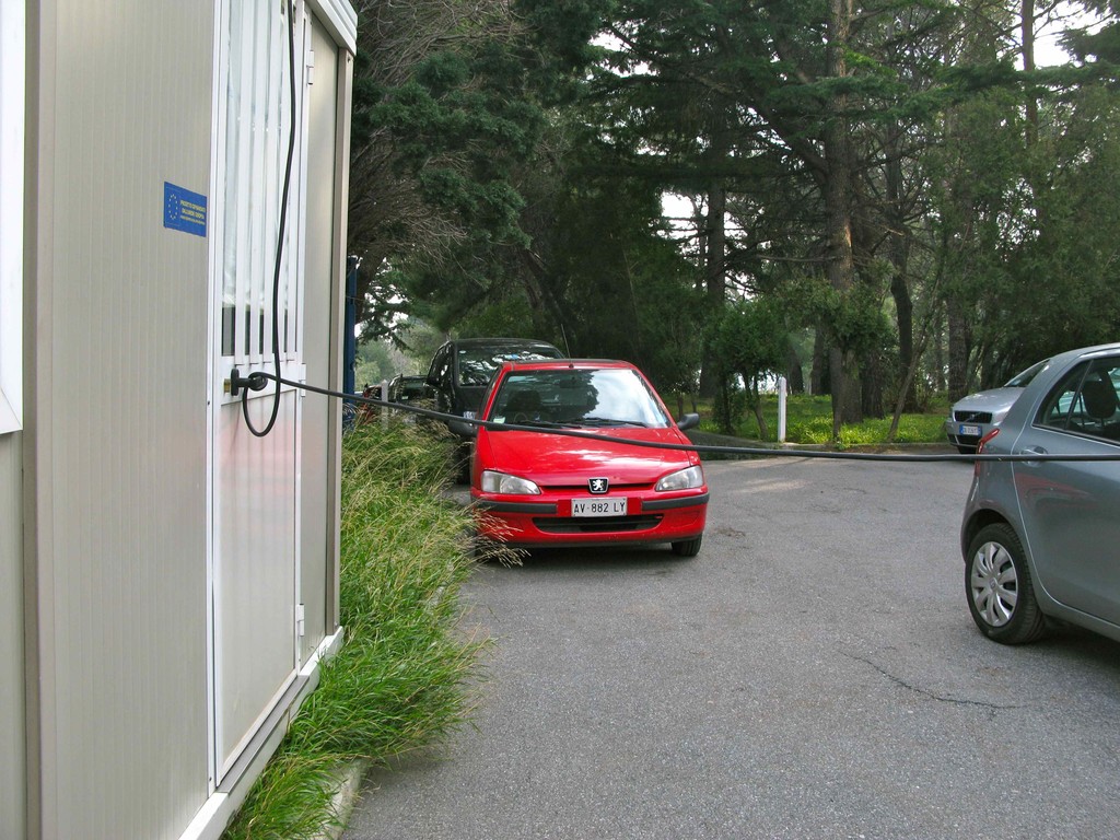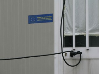 Pochi passi ed ecco un prefabbricato con l'apposita dicitura: PROGETTO COFINANZIATO DALL'UNIONE EUROPEA. Come noto l'ASL ha gran voce nel capitolo "sicurezza sul lavoro" e infatti la struttura è dotata di un impianto elettrico pienamente a norma con un robusto cavo elettrico ad altezza d'uomo, di auto e di moto (vedi foto)