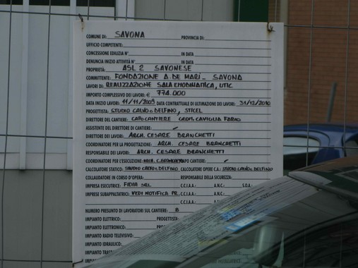 € 774.000 l'importo lavori, iniziati più di un anno fa... MA: il rigore è d'obbligo, specie se un'infermiera prende una pastiglia perchè sta male: licenziata in tronco, ribadiamo. Che... se poi chiede ed ottiene pure i danni morali, chi li paga? Chi ha avuto l'elegante e provvida idea di licenziarla, o noialtri cittadini attraverso le casse della florida sanità pubblica savonese? Chissà.