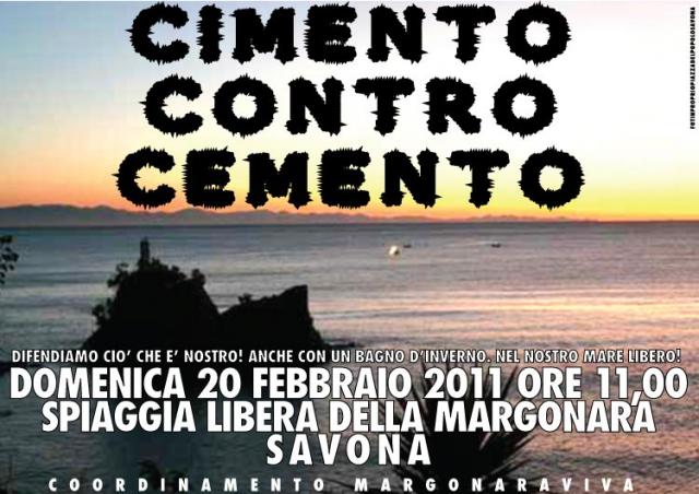 “Anche quest'anno torniamo allo scoglio della Madonnetta per rinfrescarci le idee su quello che succede e su quello che invece vorremmo che accadesse alla nostra spiaggia preferita”. Con questo slogan, gli organizzatori affezionati alla spiaggia della Madonnetta di Albissola Marina, zona nella quale è prevista la costruzione di un porto turistico e alloggi sottostanti l’Aurelia, organizzano domani alle ore 11 la consueta nuotata in mare aperto denominato “Cimento contro il cemento”.