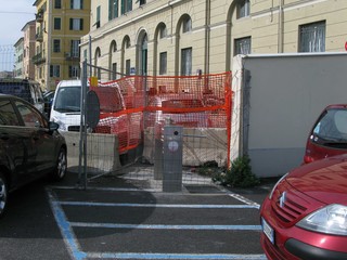 E' trascorso esattamemte un anno da quando tra la darsena e l'Agenzia delle Dogane, in piena area portuale a Savona, apparve un piccolo cantiere. Poco più di un metro quadro (sic) "adeguatamente" transennato. Di lì a poco ne sorse niente meno che un TORNELLO. Uno di quelli scabeci, qualunque, che a centinaia regolano gli accessi delle metropolitane di ogni città. Solo che questo dev'esser tutto speciale. Il cartello di divieto di sosta per lavori in corso reca fiero a tutt'oggi la data d'affissione: 22 febbraio 2010. Il tornello venne installato, collegato, cementato, recintato.