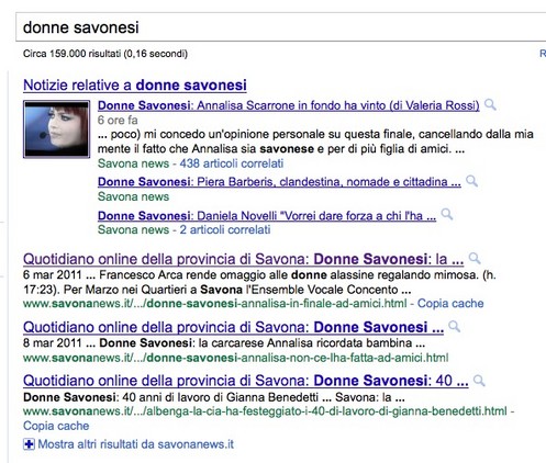 Oggi Google.it sfoggia un logo ad hoc in occasione dell'8 marzo. In una giornata come questa fa piacere che, digitando "Donne Savonesi" pochi istanti fa su Google.it, i primi cinque risultati contengano la loro Voce.