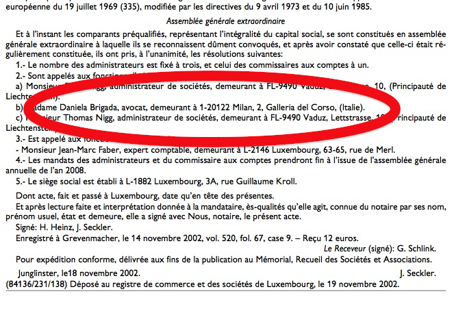 Nel 2005 Loewen viene affiancato in Lussemburgo da Federico VENTURA, commercialista milanese con sede in Galleria del Corso 2, accanto al Duomo. Nel 2010 Ventura si dimette. Gli subentra lo svizzero Francesco SPERTI, domiciliato a Milano in Via Bruno Giordano (o Giordano Bruno forse?)