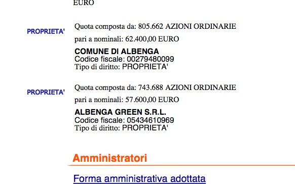Chi sia il socio "Comune di Albenga" lo sappiamo. Dell'altro, Albenga GREEN SRL, invece, sapevamo poco.