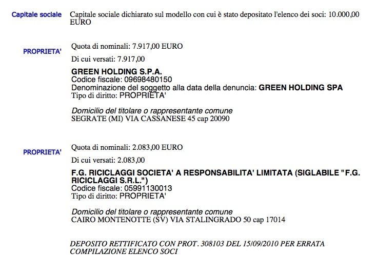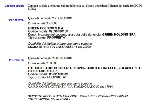 Se la FG Riciclaggi la conosciamo relativamente, la Green Holding SPA ancora meno.