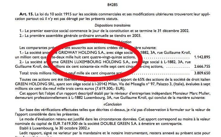 - La DOUBLE GREEN S.A. invece viene costituita da due società Lussemburghesi: La GRIDWAY S.A. e la Green Lux. S.A. il 18 novembre 2002.