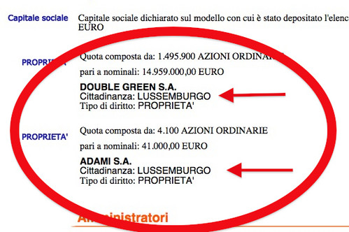 La GREEN HOLDING SPA è infatti interamente posseduta da DUE SOCIETA' LUSSEMBURGHESI:
