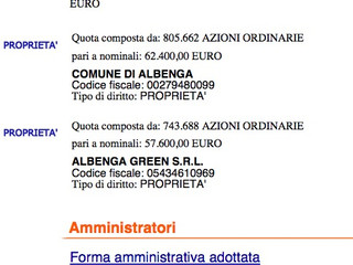 Chi sia il socio "Comune di Albenga" lo sappiamo. Dell'altro, Albenga GREEN SRL, invece, sapevamo poco.
