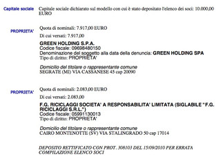Se la FG Riciclaggi la conosciamo relativamente, la Green Holding SPA ancora meno.