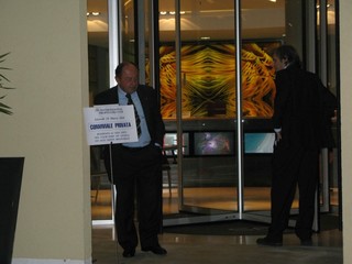 Atmosfera defilata ma da grande occasione quella dell'incontro notturno al Sea Art hotel di Porto Vado edificio che già necessiterebbe di un'imbiancatura, viste le colate nerastre lungo le pareti, segno evidente di un'aria più che salubre. Luci spente all'esterno, e una curiosa "discrezione" che un po' stride col calibro degl'invitati. Una decina i Carabinieri all'ingresso (che non gradiscono la presenza del cronista) Alcuni in borghese. Oltre la porta girevole tutto il gotha di Savona - Vado all'interno a brindare. Alla Salute? Speriamo. Vero è che la trasparenza è solo quella dell'ampia vetrata attraverso la quale si scorgono solo albumi dei partecipanti bipartisan, da Paolo Marson ad Attilio Caviglia, impegnato in numerose telefonate. La stampa, i non soci e i non espressamente invitati non sono ammessi. Ma cosa avranno da dirsi di tanto riservato? Sapremo, forse...