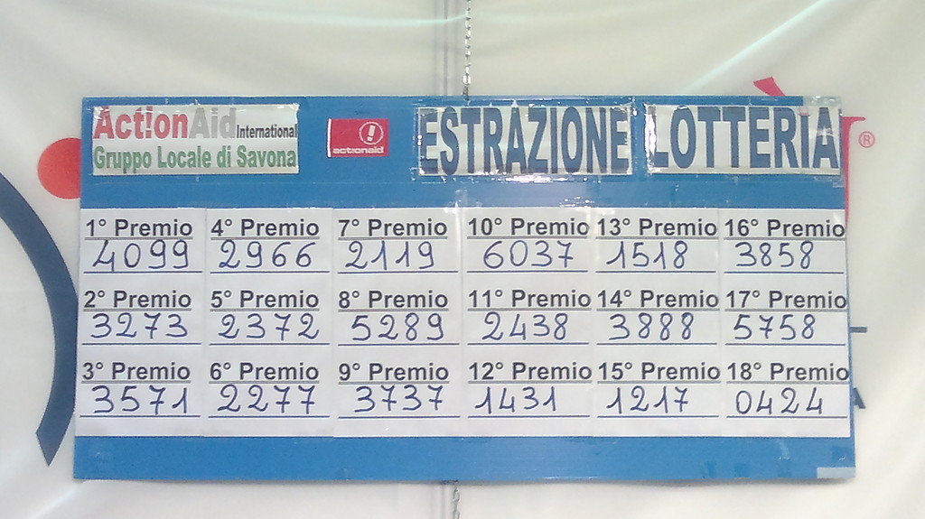 Ieri sera alle 19 presso il padiglione di Confcommercio Savona che ospita lo stand dell'organizzazione umanitaria ActionAid sono stati estratti i biglietti della lotteria a sostegno del Gruppo Locale di Savona (www.gruppolocalesavona.135.it)