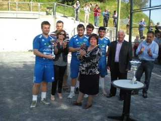 Di seguito, di fronte ad un folto pubblico, si è svolta la partita, un vero derby che si vedrà altre volte quest'anno. Si giocavano il titolo la squadra locale del Vendone e le Valli del Ponente domiciliati in un altro nuovo sferisterio, a San Biagio della Cima. Il Vendone Lampogas-Tecnogas presentava la nuova livrea verde-nera, il battitore dell'anno scorso, il sempre più maturo Giovanni Ranoisio, con i due nuovi innesti Davide Somà centrale e Claudio Somà terzino al muro (o meglio dire alla griglia, senza riferimenti culinari, da queste parti). Al largo un giocatore locale, giovanissimo Manuel Basso. Se si pensa che lo schieramento è completato dagli assenti Roberto Novaro e Cesare Barbera, mentre Tommaso Bodini era in panchina, la squadra è giovanissima, fatto salvo lo stagionato Alessandro Giacobbe, entrato nella ripresa. Dall'altra parte si salutano un Mattia Semeria in netta ripresa, assieme a Brusco, spalla già protagonista in categorie superiori, Mirko Russo, l'ex di turno, Rossi (tra l'altro presidente del comitato regionale FIPAP) e Cassini. La partita è stata condotta con un ritmo abbastanza elevato nonostante il gran caldo, ben arbitrata da Salvatore Nasca, seguito come un ombra da Marco Poggio per le cacce. Nella stagione Poggio non arbitrerà in C1 in quanto si mette alla prova seguendo anche la squadra locale come direttore tecnico. La partita è stata molto bella, equilibratissima, con validi scambi, bel gioco al volo da entrambe le parti, con un potente coinvolgimento di battitori e centrali. Si sono visti anche “cielli” di volo, in special modo da parte sanbiagina, mentre Ranoisio ha messo alla prova la battuta in tutte le direzioni. Basso anche il computo dei falli, appena più alto per Semeria, che appare a tutt'oggi un giocatore ritrovato. Il Vendone per parte sua riesce, rispetto all'anno precedente, a farse cacce più giocabili e si allena in modo specifico per il guadagno di quelle a metà campo. La svolta della partita solo sul punteggio di otto pari, con uno scatto di orgoglio di Ranoisio e compagni che hanno voluto fortemente questa vittoria, alla fine portata a casa per 11 giochi ad 8. La consegna dei trofei è avvenuta a fine partita per mano dei familiari di Elio Vio, del consigliere provinciale FIPAP Scrivano e del sindaco Losno. Alla fine una bella cena preparata dalle abili cuoche locali sotto la nuova pergola del ritrovo dello sferisterio. Un modo per ritrovarsi assieme, parlando già di prospettive di gioco a tutti i livelli.