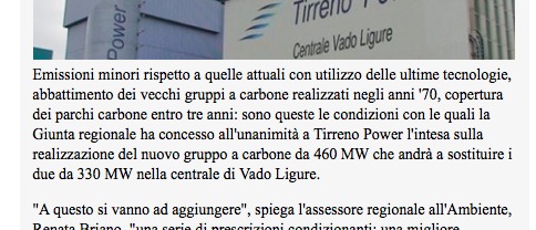 La Regione Liguria pubblica ufficialmente sul suo sito - dettando le condizioni a Tirreno Power, queste parole: