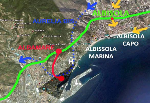 Come fa l'Aurelia bis a risolvere "problemi" se da Albisola oltre il 75% vuole andare in centro (ospedale-porto-p.Mameli) e l'Aurelia bis da Luceto, con la soppressione dell'ipotesi di uscita a Margonara, ha una unica uscita nella parte a monte di corso Ricci?