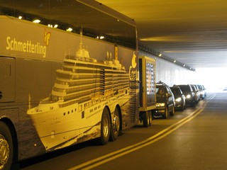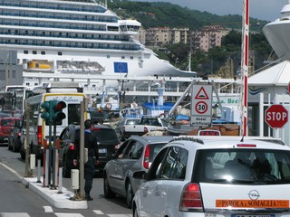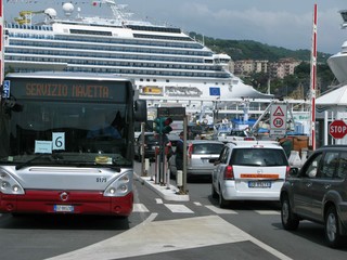 Più che i turisti a sciamare sono però i pullman. Quelli che li caricano dalle navi per portarseli via, quelli che li portano per caricarli sulle navi.