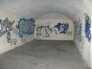 A meno che il turista non abbia l'ardire di buttar l'occhio oltre l'ostacolo ed imbattersi estasiato in uno storico corridoio con caratteristici graffiti d'epoca, alcuni dei quali paiono ripercorrere il solco dei Grandi Classici
