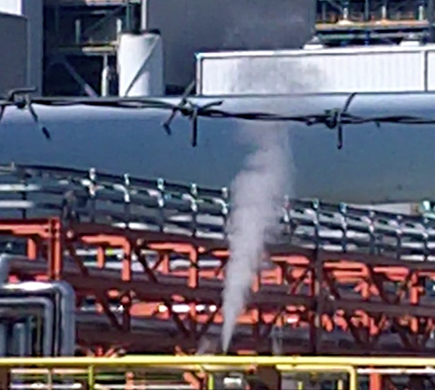 Nel pomeriggio di ieri 1° maggio, festa dei lavoratori, ci sono stati segnalati strani sbuffi biancastri fuoriuscire in pressione da tubazioni secondarie dell' impianto Tirreno Power di Vado Ligure, nella zona di ponente che si affaccia lungo la strada a scorrimento veloce che costeggia la centrale.
