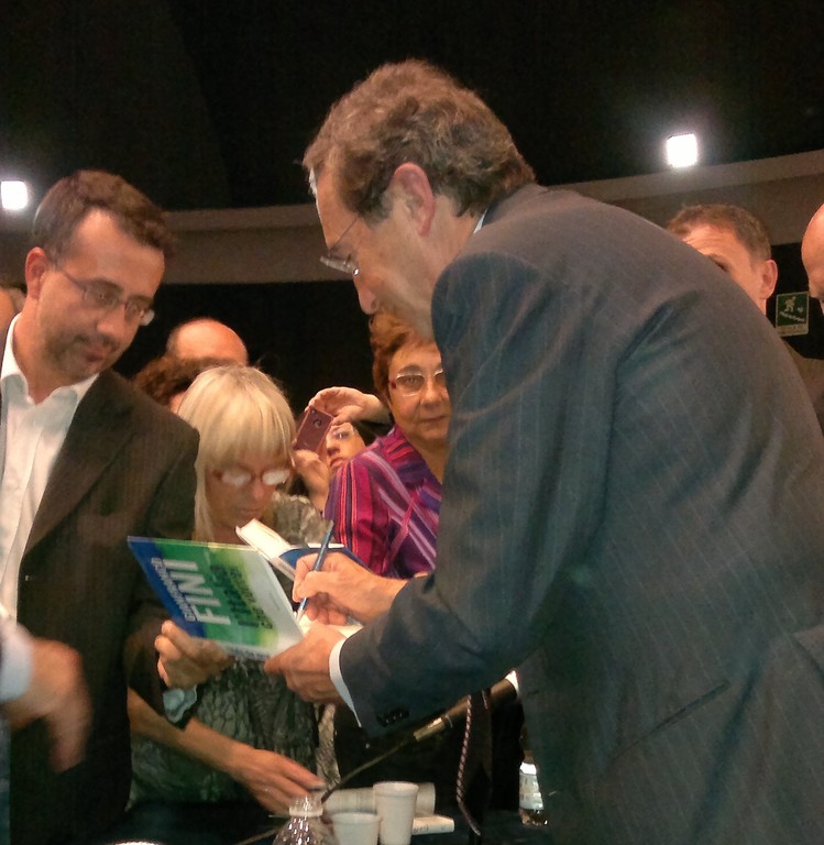 Non ė una cattiva idea unire l'utile al dilettevole: la presentazione di un libro e di un candidato sindaco in un colpo solo. E accaduto questa sera alla multisala Diana di Savona, dove il presidente della Camera Gianfranco Fini ha presentato e copiosamente autografato il suo "L'Italia che vorrei".