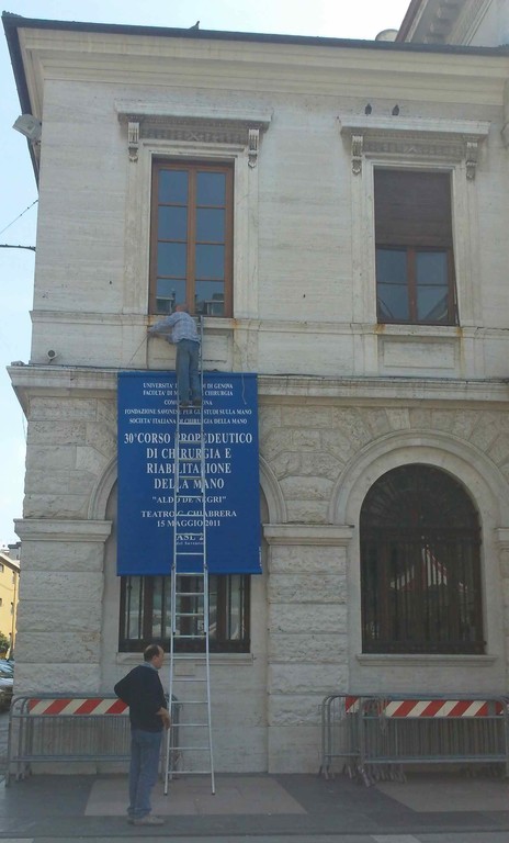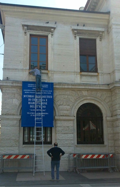 Piccole cose. Asl: lo striscione per il 30° anniversario di chirurgia della mano issato su Palazzo Sisto senza misure di sicurezza?