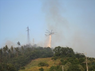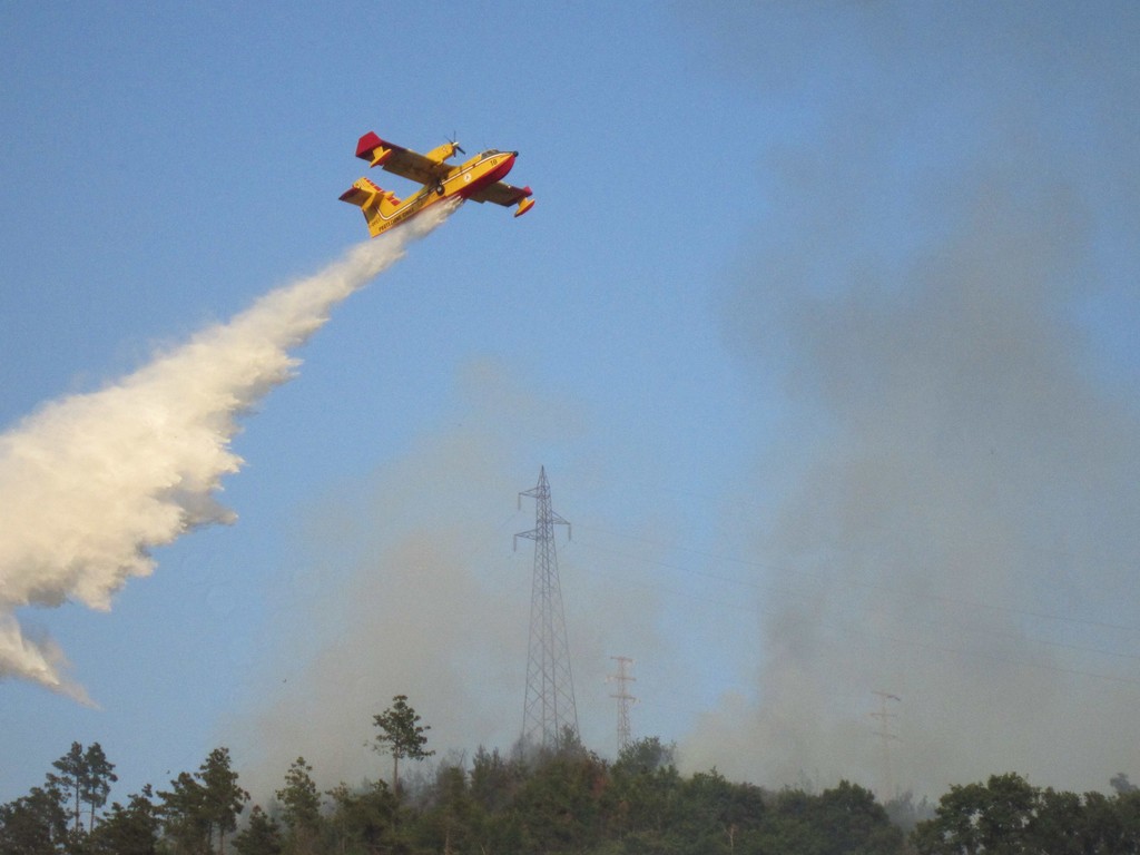 Intervento massiccio dei canadair e dei mostruosi elicotteri Sikorsky della Guardia Forestale. Gran lavoro dei Vigili del Fuoco