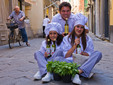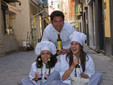 Nei panni di due chef promuovono l'iniziativa dei commercianti e del frantoio Armato "L'olio di Alassio".