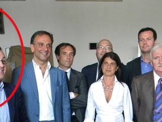 Finalmente un po' di allegria nella fotina di gruppo della "nuova" giunta comunale presentata stamane. Da sinistra a destra si nota un immenso Jorg Costantino - con l'immancabile giubbotto d'ordinanza - osservare con grande interesse la piazzola del povero Martino che non si capice bene che cosa stia osservando a destra - campo con tanta lieta incredulità.