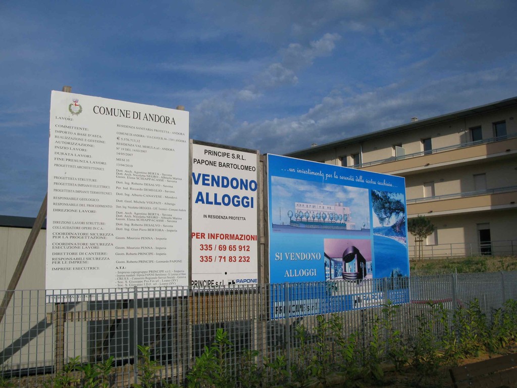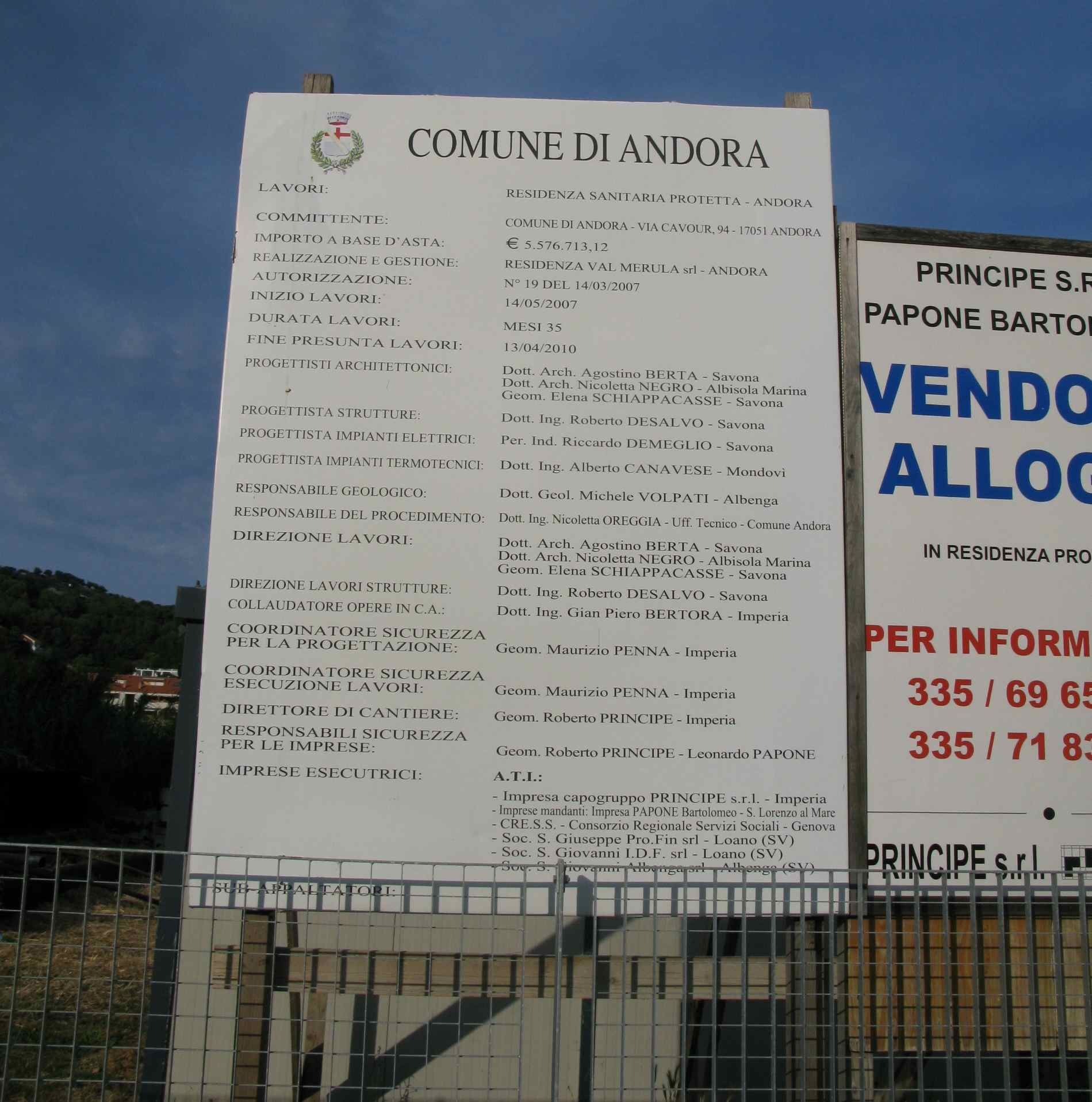 Committente il Comune di Andora, il costo dichiarato 5 milioni e mezzo di Euro, realizzazione e gestione: Residenza Val Merula SRL i cui proprietari ad oggi risultano: