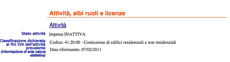 Un piccolo dettaglio di profana curiosità: l'impresa risulta inattiva