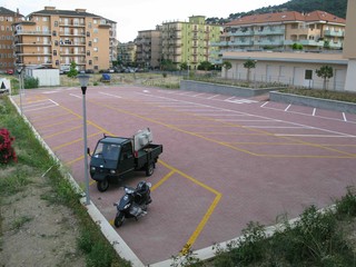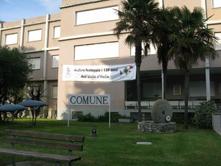 In una delle capitali rivierasche del cemento, questo materiale non sembrano padroneggiarlo del tutto. Perlomeno quelli che han costruito il moderno edificio del Comune i cui cornicioni si stanno sgretolando. Forse per impreziosire le armature di ferro arrugginite che con lo sgretolio mano a mano emergono, qualcuno ha pensato di pittarle con graziose pennellate lilla, che sembrano quasi una decorazione voluta secondo antica tradizione locale.