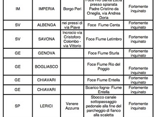 Critica la situazione nella provincia di Genova, dove tutti i quattro punti di rilevamento presi in considerazione sono risultati fortemente inquinati. In particolare, i punti di prelievo sono stati effettuati nella città capoluogo, nei pressi della foce del fiume Sturla; a Bogliasco alla foce del fiume Rio del Poggio e a Chiavari, dove sono stati effettuati due prelievi, uno alla foce del fiume Entella e un altro, vicino allo scarico fognario, che si riversa direttamente nel fiume.